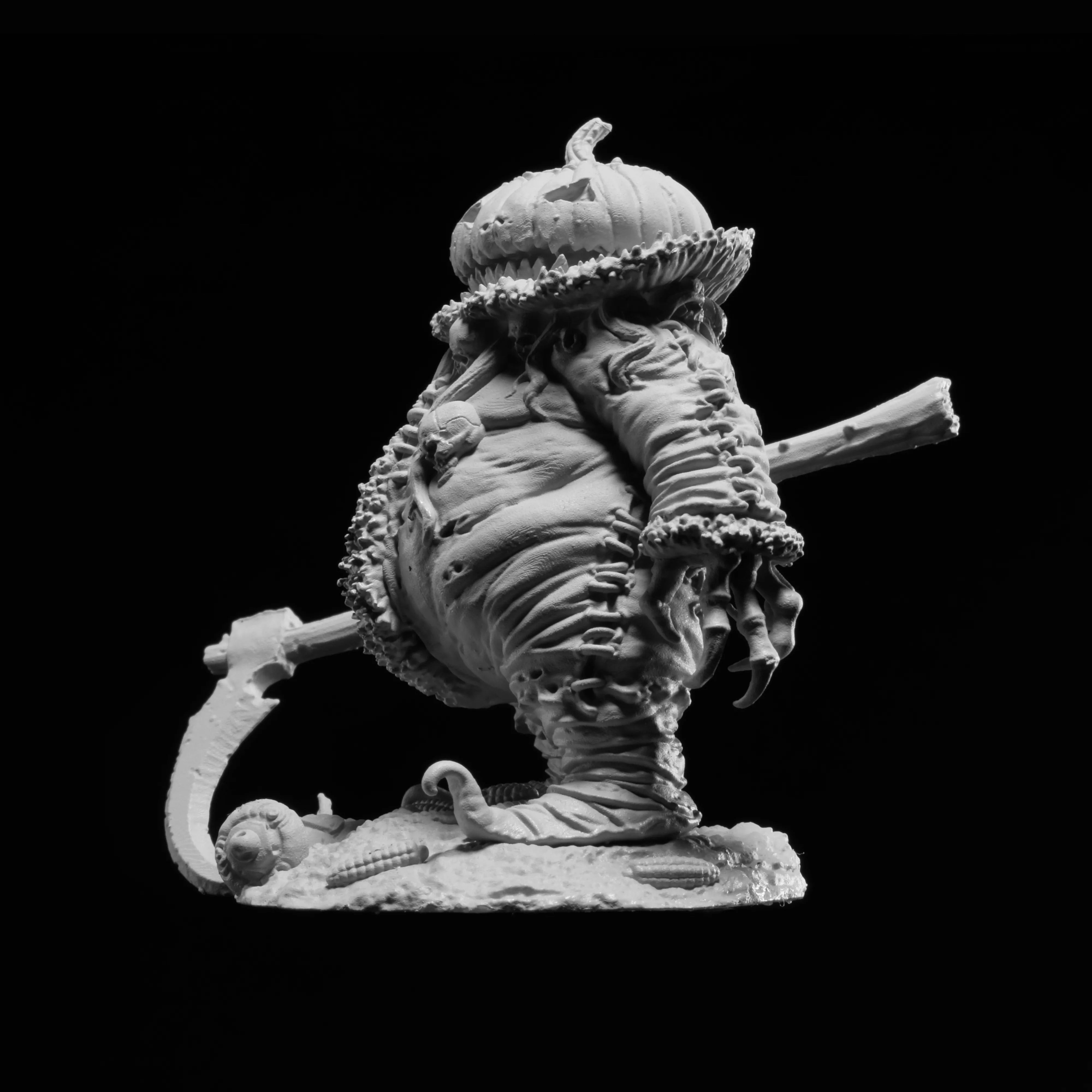 "The spirit of Tokdyn dwells within the stuffed body of an old scarecrow, sewn together from old sheepskins to ward off the crows and other scavengers. In the cavernous carved triangles of its jack-o-lantern head, its evil presence emits fiery, ghoulish light as if lit from within by a candle."