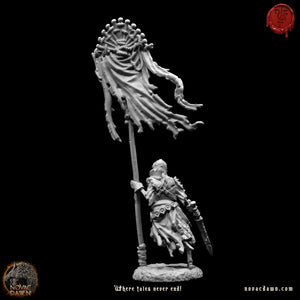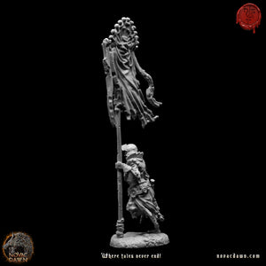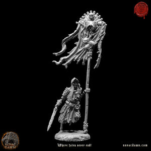 Daniel carries the banner of the Undead. In life, he was a strong warrior, and as the Undead, he still carries the mace he wielded in the name of his cause. He does not wear as much armor as the rest. He still wears the rags he was bound in when members of his congregation had him drowned to support their cause.