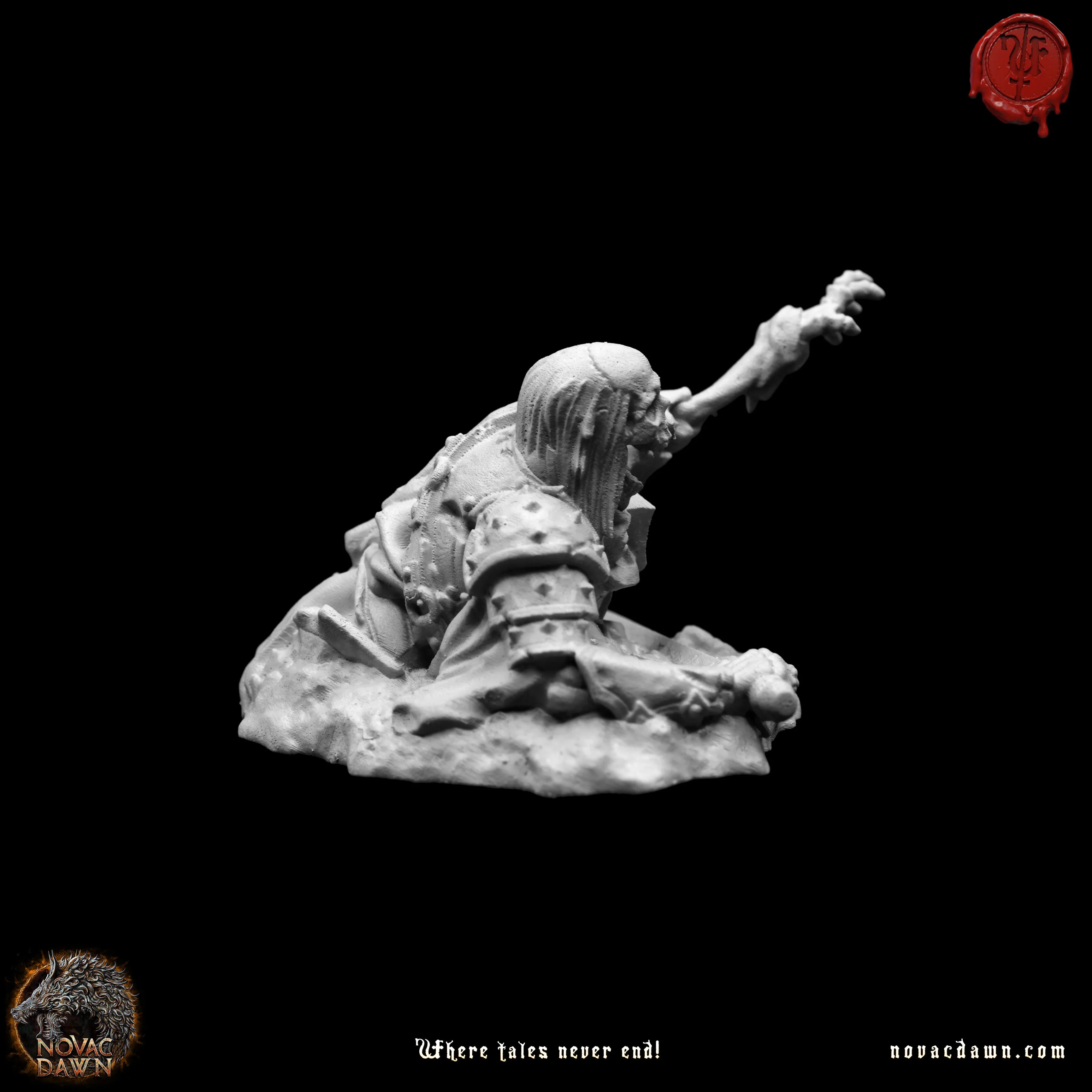 Valerius legs were taken off by a powerful sword on the battlefield. When he was risen, nothing of his bottom half could be reattached. Now he drags himself around on his arms, but he is still as quick and deadly as any other member of the Undead. In life he was a giant man around seven feet tall, and because of his size the arrows that pierce his shoulders failed to take him down.