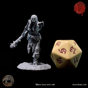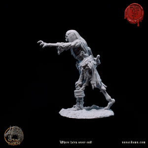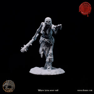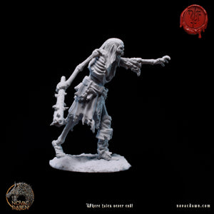 Tristan, son of a humble pig farmer in the village of Raventon, grew up with a talent for woodworking, crafting intricate designs from simple wood. When famine and disease struck, he tried to help his village by building tools and shelters. Despite his efforts, desperation led the villagers to make a pact with Malachi, a necromancer. Transformed into a skeletal warrior, Tristan now wields a staff in his left hand, a grim parody of his woodworking tools. As part of the Bone Reapers, he roams the land, a haunting figure bound by dark magic and a twisted fate.